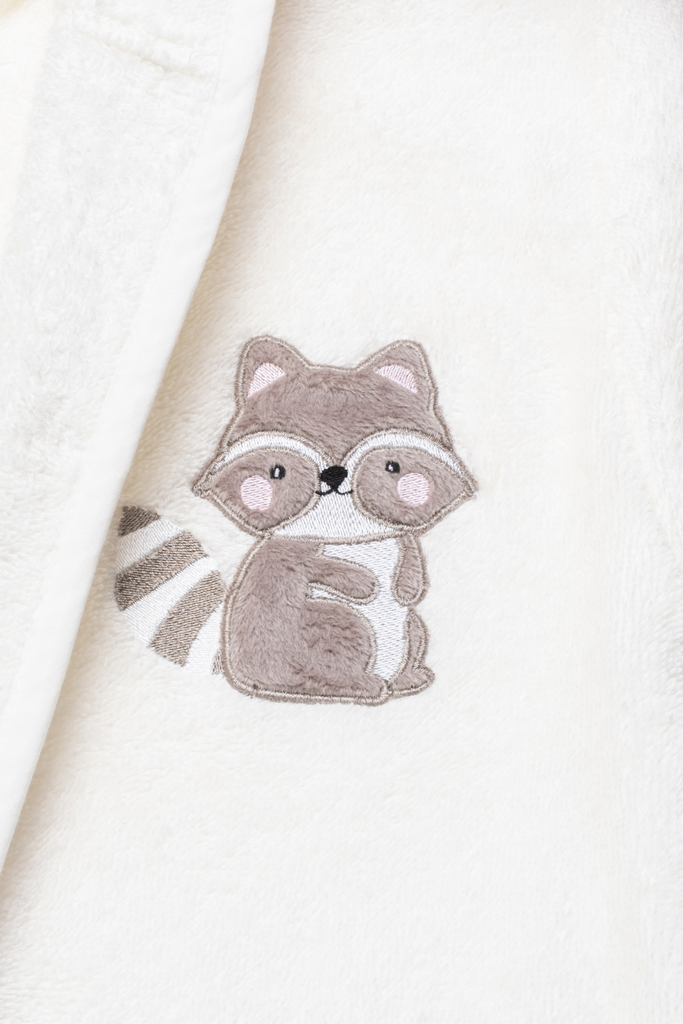 Sol yakasında yer alan sevimli hayvan nakışıyla çocukların ilgisini çeker, kurulanmayı keyifli hale getirir.