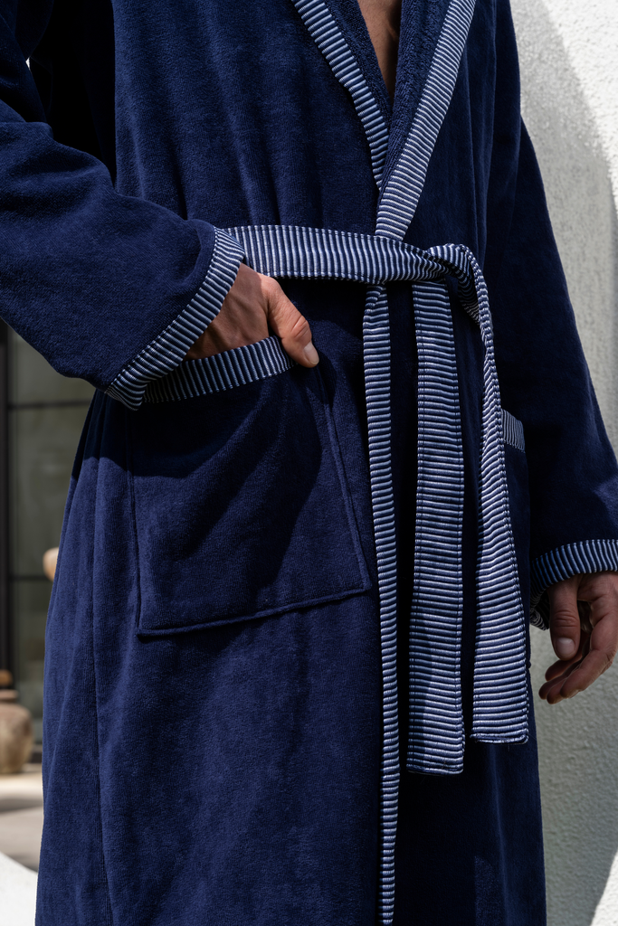 Lacivert zemine eşlik eden çizgili pervaz detayıyla modern bir denizci ruhunu yansıtır.