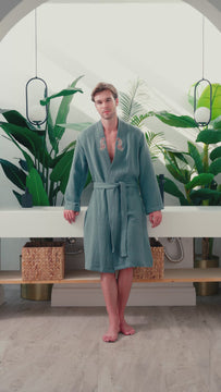 %100 pamuklu müslin kumaşıyla hafif ve nefes alabilen bir sabahlık deneyimi sunar.