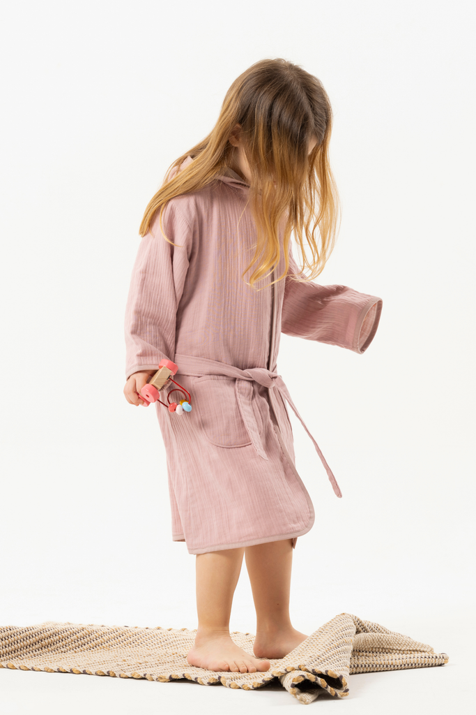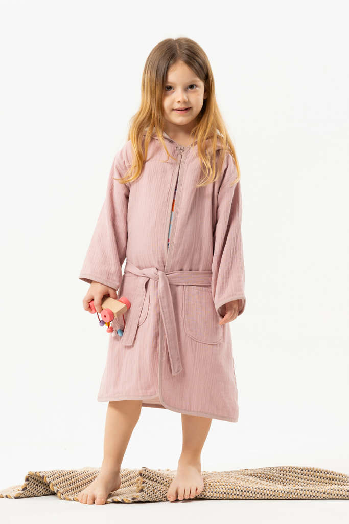 Crincl Müslin Çocuk Bornozu Gül Kurusu