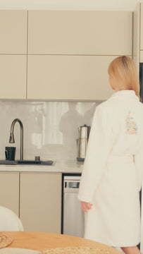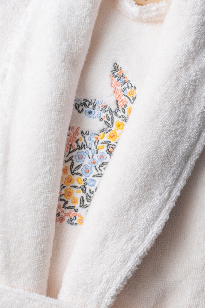 Sırt kısmındaki çiçekli tavşan nakışı detayıyla, Lapinblanc’ın yumuşaklığını, zarafetini ve oyunbaz ruhunu yansıtır.